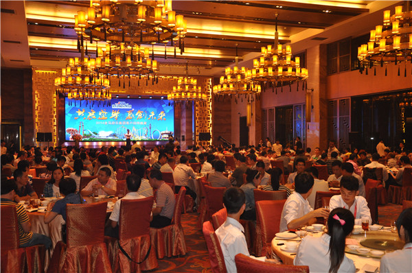 晚上市游協(xié)在金上濠舉行招待晚宴,延開百席,更邀請到IAAPA主席Mario先生參加。作為市游協(xié)會(huì)長,鄧志毅董事長發(fā)表了熱情洋溢的致辭,歡迎世界各國、全國各地的客商到中山洽談、合作,同時(shí),他對中山游戲游藝產(chǎn)業(yè)充滿信心,表示本屆游博會(huì)較往屆帶來更多驚喜。隨后宴會(huì)開始,游樂業(yè)界共聚一堂,為本次游樂的盛宴舉杯共賀。