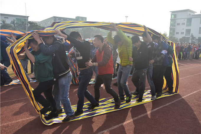 隨著一聲哨響,緊張的比賽拉開帷幕。場上選手全力以赴,場下的員工則當起了啦啦隊,加油聲、歡呼聲此起彼伏,每個人都在輕松、和諧的氛圍中享受著運動的快樂,“汗水與微笑同在,緊張和歡樂并存”成了本屆趣味運動會的真實寫照。參賽的每一個運動員每一個團隊都牽動著在場員工的心弦。同呼吸,共命運。彼此加油、歡呼、喝彩,現(xiàn)場歡聲笑語此起彼伏。