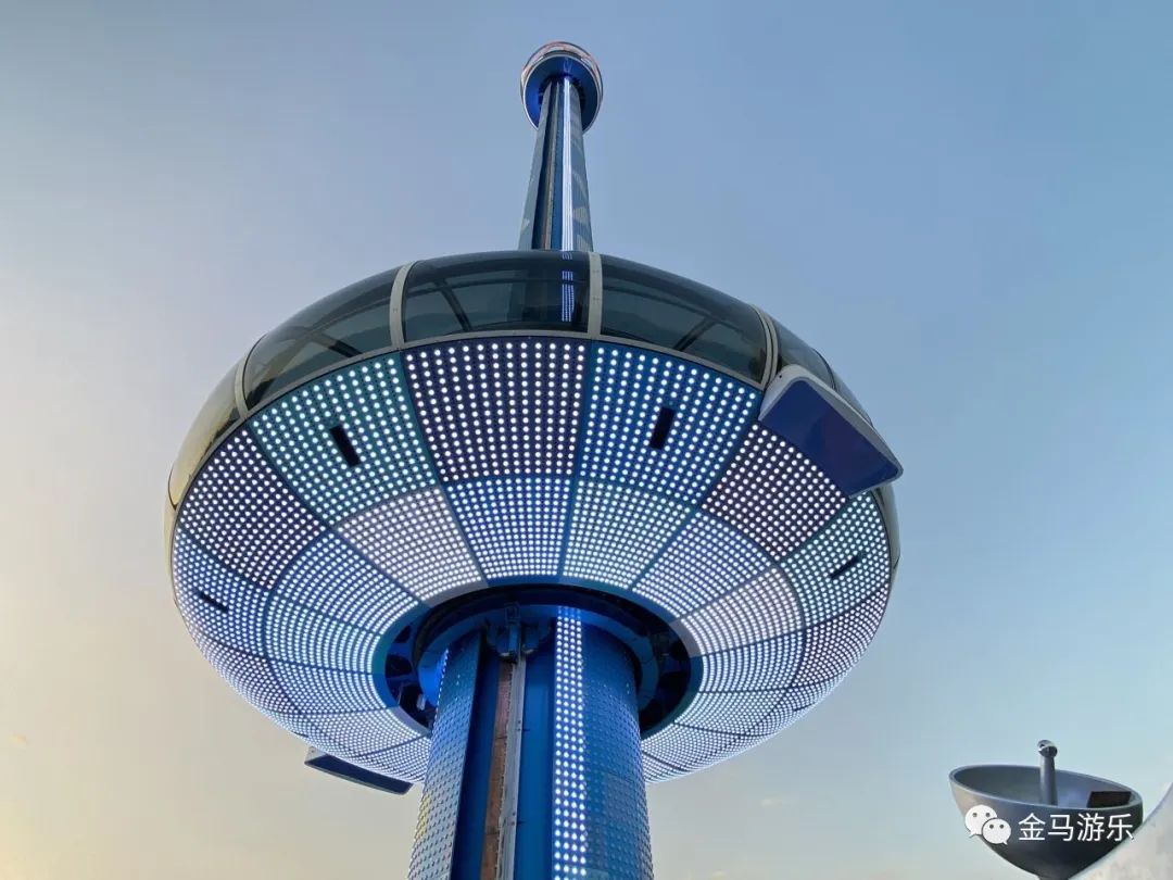 隨著“迷你世界·冒險山”的開放,深圳歡樂谷與金馬游樂攜手打造的地標(biāo)項(xiàng)目——全景式高空觀景塔”星空之環(huán)”亦正式亮相?!靶强罩h(huán)”豎立在冒險山山頂,有著65米高的圓柱塔體,極具未來感的艙體,夜幕中的百變燈效以及全天候360°絕美觀景享受,使其成為園區(qū)日夜閃耀的明星。