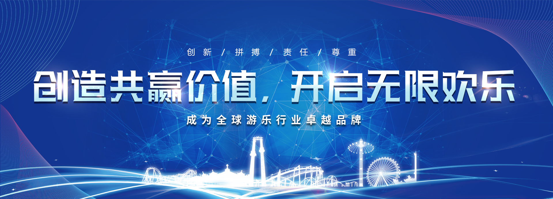 “開啟無限歡樂”:我們不斷創(chuàng)新、升級的游樂產(chǎn)品及消費體驗,帶給最終消費者愉快、激情、能量,為家庭、社會撒播歡樂,助推人們快樂、和諧地生活。