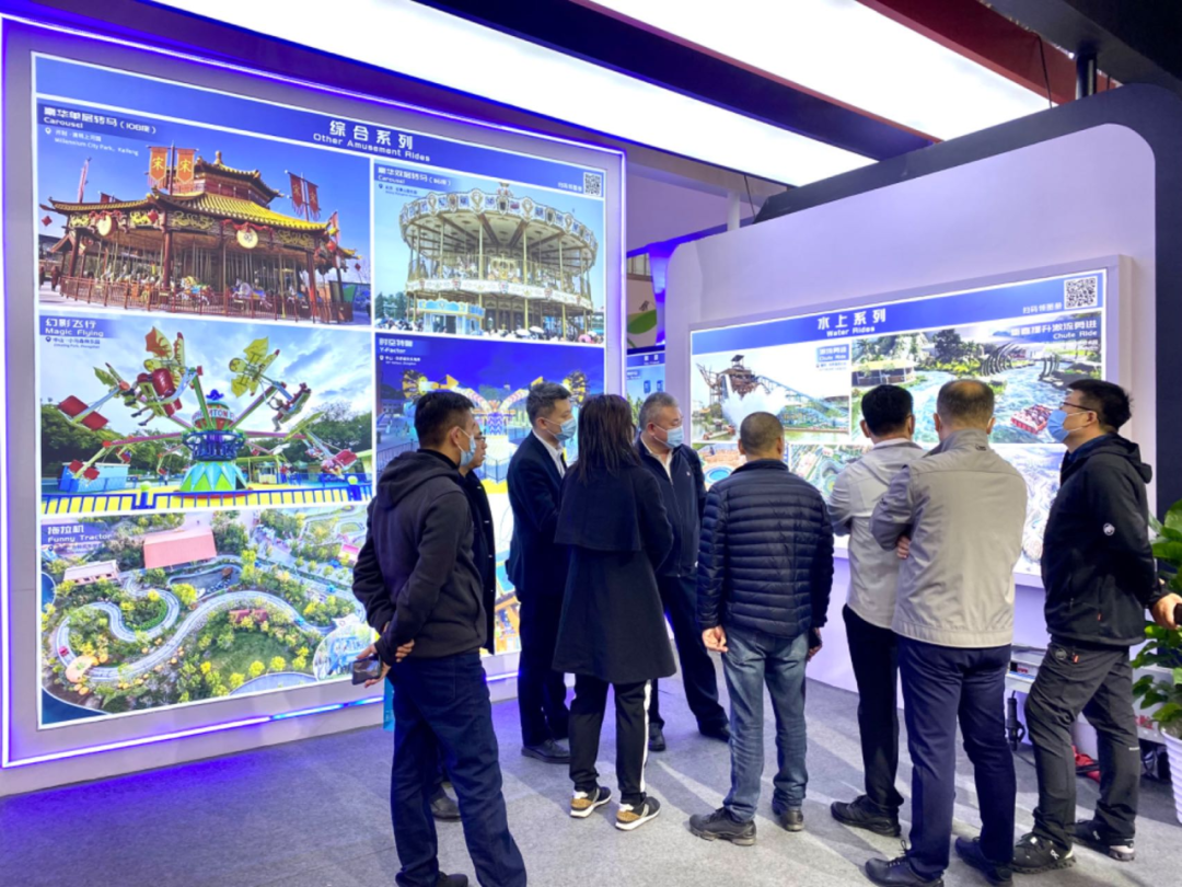 文化和旅游部資源開發(fā)司副司長張銳瑞、中國游藝機游樂園協(xié)會會長姚軍、IAAPA亞太區(qū)執(zhí)行董事兼副總裁陳列強等領(lǐng)導(dǎo)蒞臨公司展位參觀指導(dǎo)