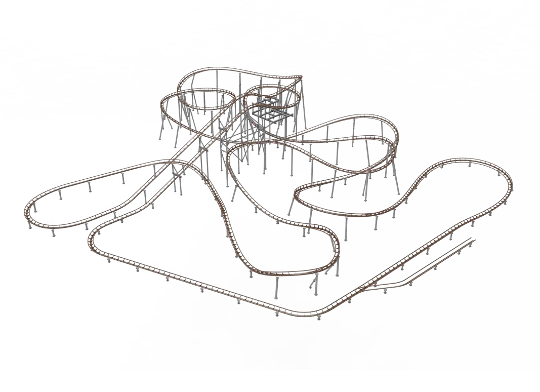 礦山車模仿古代礦山列車運(yùn)行模式,采用仿古式的火車造型,游客仿佛置身于礦山現(xiàn)場。全程路軌設(shè)有兩個提升段,配合先進(jìn)變軌技術(shù)、減震膠與柔和的永磁制動,為乘客乘坐帶來舒適靜謐的體驗(yàn)。同時獨(dú)特的壓腹式壓杠結(jié)構(gòu),確保包括?度1.1m以上兒童可被有效束縛,增大游客受眾范圍。