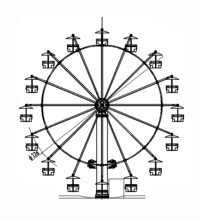 ?型摩天輪可承載48?,主要由?柱、塔頭、旋轉(zhuǎn)頭、轉(zhuǎn)輪、避雷針、吊籃、驅(qū)動(dòng)裝置和電?系統(tǒng)等組成,并配備燈光和?響。設(shè)備外觀萌趣、造型?巧精致,能為樂園??提升歡樂?氛,是公園和游樂場(chǎng)很受歡迎的觀覽游樂設(shè)備。