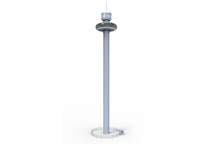 觀景塔可容納60人,運(yùn)營高效。塔體配備配重裝置,抵消艙體大部分重量,降低提升所需功率,從而達(dá)到降低運(yùn)營成本的效果。塔底配置緩沖裝置,為乘客提供輕緩的乘坐體驗(yàn),讓乘客在舒適的環(huán)境中飽覽周邊美景