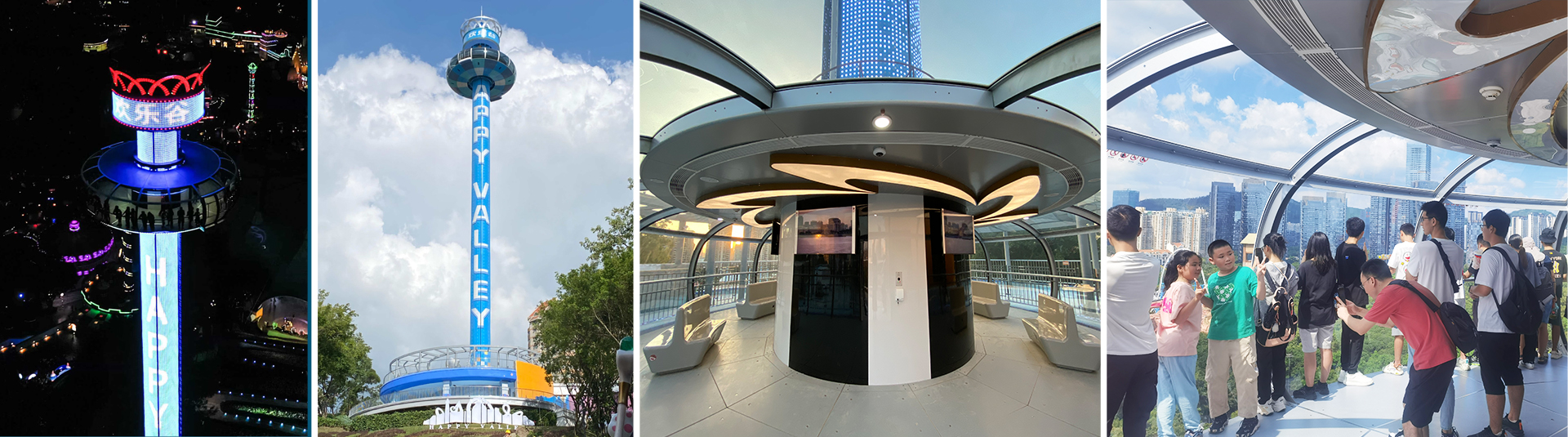 觀景塔擁有可容納100人的“甜甜圈”旋轉(zhuǎn)艙體,載客能力強。雙自動門進出口的設(shè)計便于快速上下客,運營高效。乘客在旋轉(zhuǎn)艙中360°環(huán)繞式縱情飽覽四周美景,還可通過艙內(nèi)影音系統(tǒng)感受多元視覺盛宴。夜幕降臨燈光閃耀,璀璨奪目輕易打造夜場焦點,成為聚客地標。
