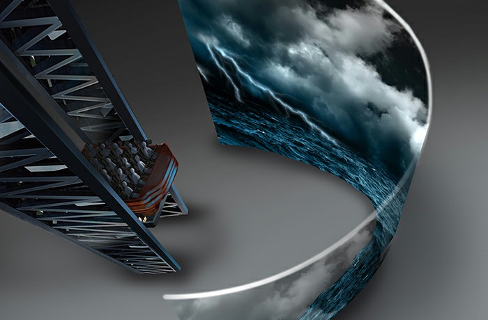 本項(xiàng)目由傳統(tǒng)的激流勇進(jìn)與影視元素相結(jié)合,船體造型新穎,此項(xiàng)目的車體運(yùn)行設(shè)有俯沖、傾斜、速降等元素,讓游客沉浸于驚險刺激的游樂體驗(yàn)中。