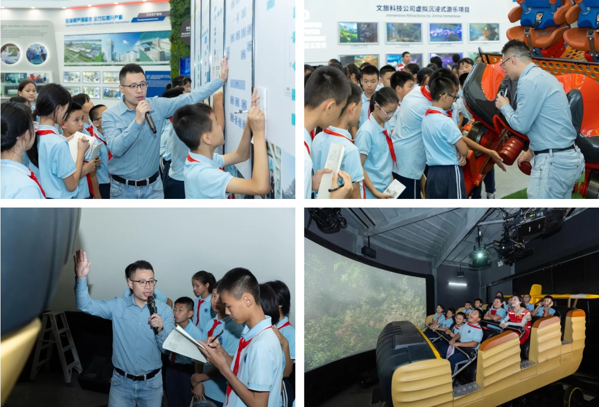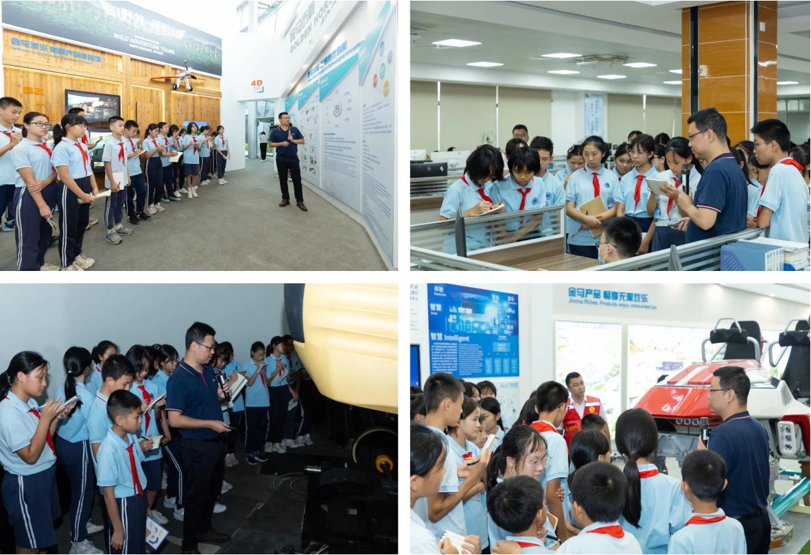 活動期間,中國特種設(shè)備檢測研究院游樂設(shè)施與客運索道專業(yè)人員、中山市游戲游藝行業(yè)協(xié)會秘書長雷嘉詠帶領(lǐng)中山市港口鎮(zhèn)中心小學學生到訪金馬游樂開展了實地參觀。