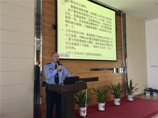 隨后由宏基派出所警官代表為新員工帶來(lái)治安法制教育,通過(guò)分享其豐富從警生涯中遇到的真實(shí)案件,講述違法犯罪的嚴(yán)重后果,警示新員工嚴(yán)格遵守國(guó)家法律犯規(guī),做合格的守法公民。接下來(lái)保安隊(duì)代表結(jié)合公司消防安全規(guī)定,通過(guò)講述消防安全的理論和實(shí)際自救與救援方法流程,普及消防知識(shí)和提高新員工消防安全防范意識(shí)。