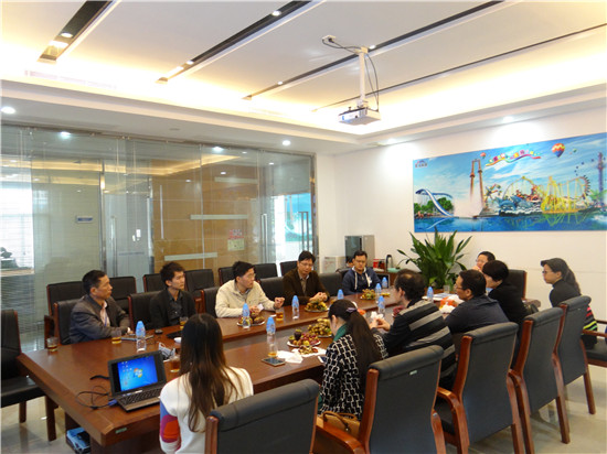 本次到訪,丁部長(zhǎng)一行主要就國(guó)內(nèi)大型游樂(lè)設(shè)施設(shè)計(jì)、制造最新發(fā)展方向、我司在大型游樂(lè)設(shè)施生產(chǎn)過(guò)程中的質(zhì)量控制有效辦法以及企業(yè)文化建設(shè)的先進(jìn)經(jīng)驗(yàn)開(kāi)展學(xué)習(xí)調(diào)研,公司高層曾總、陳總與檢測(cè)室、售后部等相關(guān)負(fù)責(zé)人共同出席接待了他們。期間,陳總就我司產(chǎn)品在創(chuàng)意、策劃和工藝設(shè)計(jì)上的關(guān)鍵技術(shù)一一進(jìn)行了展示與詳細(xì)解說(shuō),并就公司精益生產(chǎn)的特色管理方法與產(chǎn)品質(zhì)量有效控制之間的關(guān)聯(lián)作用進(jìn)行剖析,一番解說(shuō)引得座上貴賓們連聲贊許。曾總也就公司在文化建設(shè)中的豐富經(jīng)驗(yàn)與做法與眾人開(kāi)展交流分享,對(duì)如何有效平衡企業(yè)經(jīng)營(yíng)與企業(yè)文化兩者關(guān)系、真正落實(shí)“