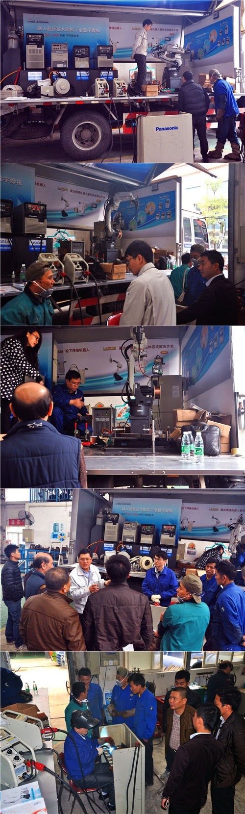 為提高焊接品質(zhì)、降低焊接飛濺、降低人工成本,3月25日,公司邀請?zhí)粕剿上鹿镜綇S舉行焊接機器人技術(shù)交流及焊接演示,現(xiàn)場雙方就我司特種設備焊接工藝需求進行了高效的溝通,并就產(chǎn)品制作優(yōu)化明確了方向,隨后松下公司通過演示車針對有關需求進行了數(shù)字脈沖焊機GL4、超低飛濺焊機GS4、鋁MIG焊接專用焊機GP4、數(shù)字等離子切割機60PF、焊接機器人等設備演示,交流活動圓滿結(jié)束。