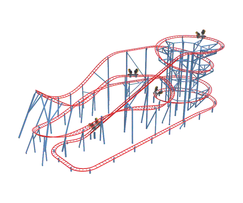 超炫過(guò)山車(chē)結(jié)合720°螺旋下降、水平螺旋環(huán)的運(yùn)動(dòng)方式,配合自轉(zhuǎn)回旋車(chē)體,同時(shí)創(chuàng)新地將過(guò)山車(chē)有傾?的路軌引到自旋滑車(chē)的軌道中,打造出兼具失重、超重和回旋的多重乘坐體驗(yàn)。四人座車(chē)體中,游客兩兩對(duì)坐,互動(dòng)交流有趣。該設(shè)備適合親?、情侶群體游客游玩。