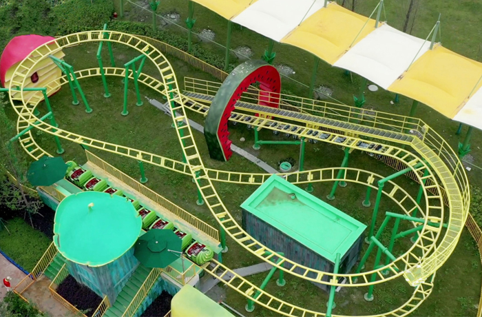 一種戶外休閑娛樂設(shè)備,列車由摩擦輪驅(qū)動(dòng)提升到軌道最高端后,立即轉(zhuǎn)為沿軌道自由高速滑行,時(shí)而俯沖直下,時(shí)而電掣穿梭,呼嘯而行。游客舒適地穩(wěn)坐于座椅上,盡情地領(lǐng)略失重和離心的驚險(xiǎn)刺激的感覺,是游客的摯愛項(xiàng)目。