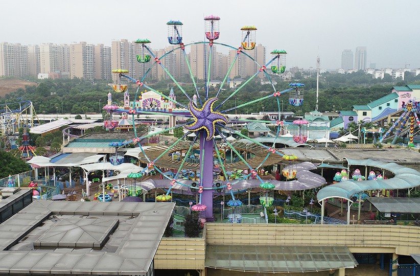 ?型摩天輪可承載48?,主要由?柱、塔頭、旋轉(zhuǎn)頭、轉(zhuǎn)輪、避雷針、吊籃、驅(qū)動(dòng)裝置和電?系統(tǒng)等組成,并配備燈光和?響。設(shè)備外觀萌趣、造型?巧精致,能為樂園??提升歡樂?氛,是公園和游樂場(chǎng)很受歡迎的觀覽游樂設(shè)備。