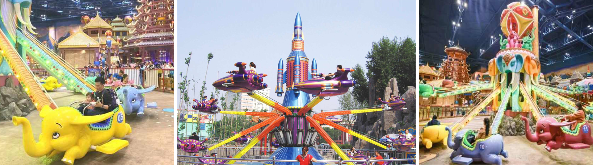 自控飛機集旋轉(zhuǎn)、升降運動形式于一體,乘客可通過搖桿自由控制座艙上下升降,猶如掌控飛機高低飛行??苹玫耐庥^裝飾、逼真刺激的空戰(zhàn)音響效果,使乘客在過程中體驗到自駕飛機的樂趣。