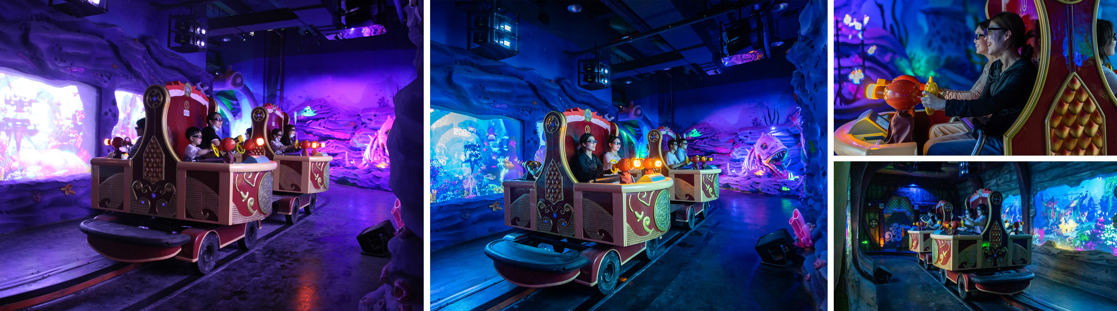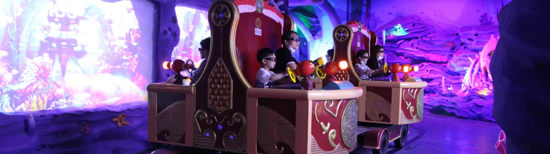 交互式黑暗乘騎游樂(lè)設(shè)備,是融合交互游戲、360度旋轉(zhuǎn)軌道車、主題景觀、多種特效等尖端技術(shù)于一體的室內(nèi)體驗(yàn)娛樂(lè)項(xiàng)目,讓乘客在逼真的虛擬場(chǎng)景中進(jìn)行角色對(duì)抗,增加交互體驗(yàn)。